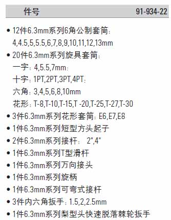 | 1A1421 | R91-934-22 | 红版 46件套6.3mm,公制 | 把 | ¥510.00元 | 1-3天 | |