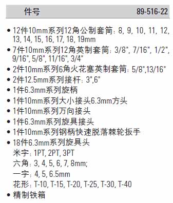 | 1A1444 | 89-516-22 | 套筒/接杆/扳手等 | 把 | ¥656.70元 | 7-15天 |