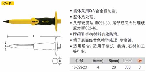 | 1A2459 | 16-329-23 | 总长:300mm,冲直径:4mm,柄直径:20mm,凿体材质:Cr-v合金钢,手柄材料:PP+TPR | 套 | ¥116.90元 | 1-3天 |