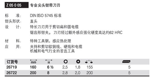 | 1A5140 | 26719 | Z 05 0 160 05系列 直嘴专业型 160mm | 把 | ¥228.00元 | 7-60天 | |
