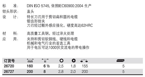 | 1A5712 | 26720 | Z 05006系列 160mm VDE | 把 | ¥275.00元 | 7-60天 | |