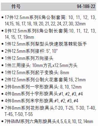 > 全部产品分类 > 五金工具 > 手动工具 > 扳手/套筒/扭矩扳手 > 组套扳手 > 58件套12.5MM系列公制组套