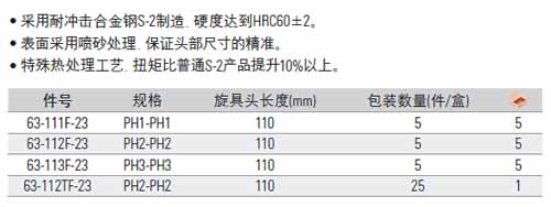 | 2A1980 | 63-112F-23-M | PH2-PH2x110mm(5支)带磁 | 盒 | ¥25.00元 | 1-3天 | |