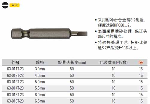 > 全部产品分类 > 五金工具 > 动力工具附件 > 批头 > 6.3MM系列一字批头50mm