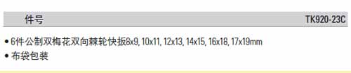 > 全部产品分类 > 五金工具 > 手动工具 > 扳手/套筒/扭矩扳手 > 棘轮扳手 > 6件公制双梅花双向棘轮快扳套装