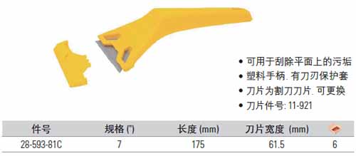 | 1A2332 | 28-593-81C | 7寸,长度:175mm,刀片宽度:61.5mm,塑料手柄,刀片件号:11-921 | 把 | ¥25.80元 | 1-3天 |