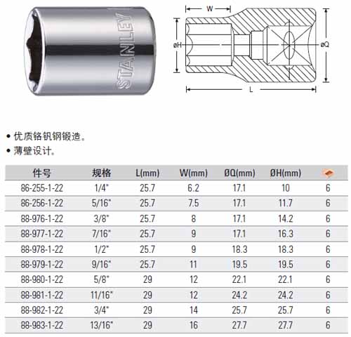 > 全部产品分类 > 五金工具 > 手动工具 > 扳手/套筒/扭矩扳手 > 套筒 > 10MM系列英制6角标准套筒