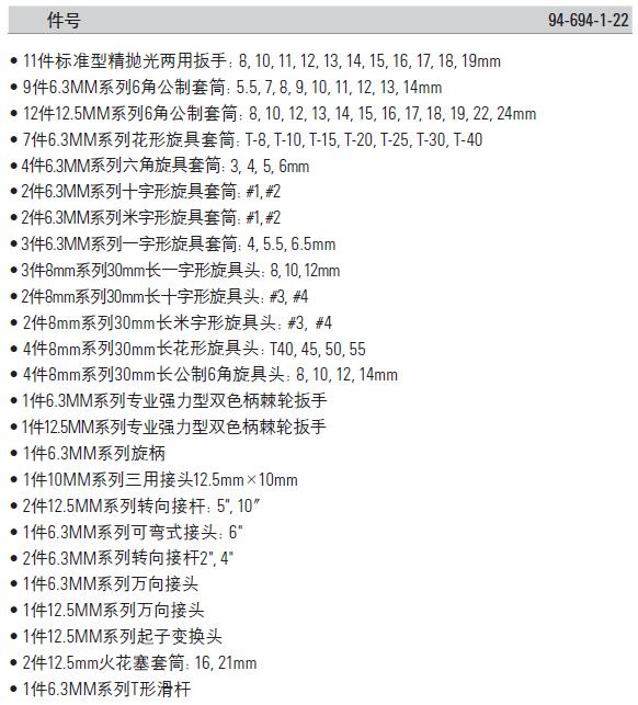 | 1A0042 | 94-694-1-22 | 即将上市,暂无货 套筒/接杆/扳手/旋具头等 | 套 | ¥861.50元 | 15-60天 |