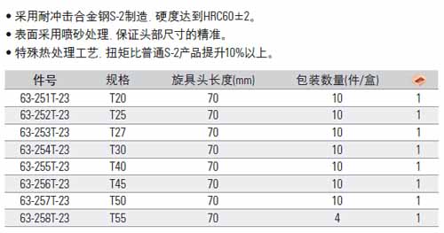 | 2A0251 | 63-253T-23 | T27x70mm(10个) | 盒 | ¥38.00元 | 1-3天 | |