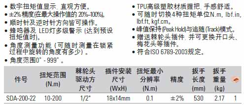 | 1A0482 | SDA-200-22 | 扭矩范围:10-200N.m | 把 | ¥5040.80元 | 7-15天 |