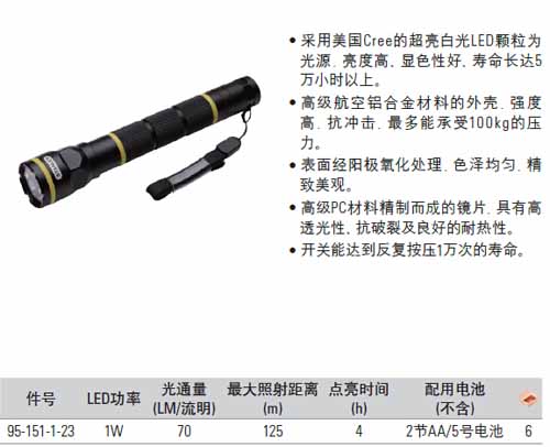 > 全部产品分类 > 五金工具 > 手动工具 > 更多通用工具 > 照明 > LED超亮铝合金手电筒1W