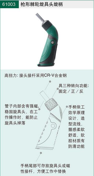 > 全部产品分类 > 五金工具 > 手动工具 > 更多通用工具 > 其他通用工具 > 枪形棘轮旋具头旋柄