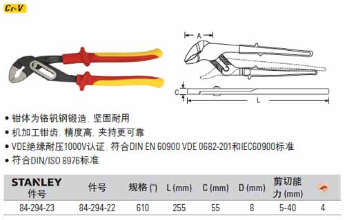 > 全部产品分类 > 五金工具 > 手动工具 > 电力/电子专用 > 绝缘工具 > MaxSteel加硬绝缘水泵钳