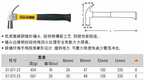 > 全部产品分类 > 五金工具 > 手动工具 > 锤/斧/冲凿/钢字码 > 锤 > 玻璃纤维柄羊角锤