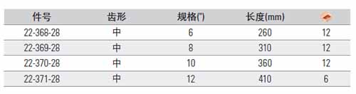 | 1A2252 | 22-370-28 | 10寸,长度:360mm, 齿型:中 | 把 | ¥55.60元 | 1-3天 | |