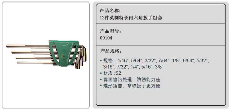 > 全部产品分类 > 五金工具 > 手动工具 > 螺丝刀/内六角 > 内六角组套 > 12件套英制加长内六角
