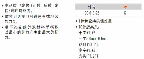 | 1A1461 | 68-010-22 | 十字/一字/花形头/螺丝刀(限量供应下单请致电028-873 97380) | 套 | ¥113.00元 | 1-3天 |