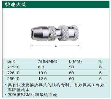 > 全部产品分类 > 五金工具 > 手动工具 > 扳手/套筒/扭矩扳手 > 其他扳手 > 快速夹头