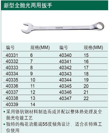 > 全部产品分类 > 五金工具 > 手动工具 > 扳手/套筒/扭矩扳手 > 通用扳手 > 新型全抛光两用扳手