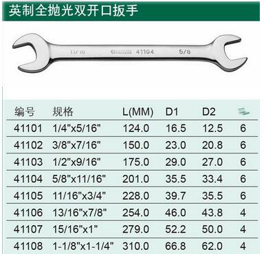 > 全部产品分类 > 五金工具 > 手动工具 > 扳手/套筒/扭矩扳手 > 通用扳手 > 英制全抛光双开口扳手