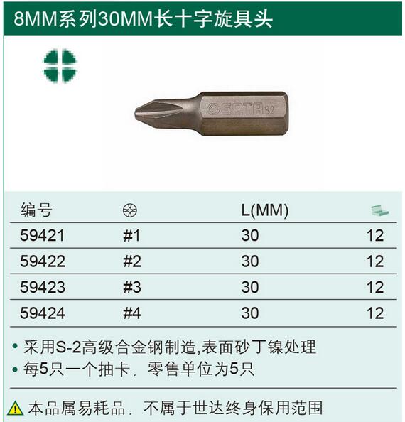 > 全部产品分类 > 五金工具 > 动力工具附件 > 批头 > 8MM系列30MM长十字批头