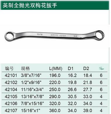 > 全部产品分类 > 五金工具 > 手动工具 > 扳手/套筒/扭矩扳手 > 通用扳手 > 英制全抛光双梅花扳手