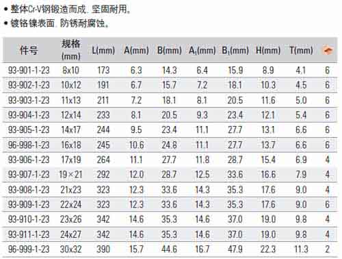 | 1A0203 | 88-897-1-22 | 公制双梅花扳手 | 把 | ¥33.00元 | 1-3天 | |