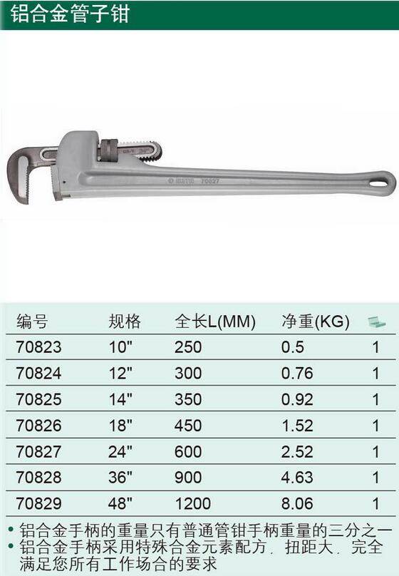 > 全部产品分类 > 五金工具 > 手动工具 > 通用钳类 > 管钳 > 铝合金管子钳
