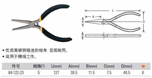 > 全部产品分类 > 五金工具 > 手动工具 > 电力/电子专用 > 电子钳 > 黑柄迷你扁嘴钳