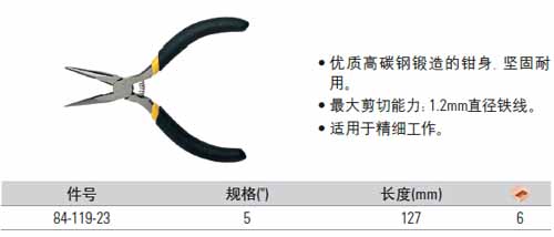 > 全部产品分类 > 五金工具 > 手动工具 > 电力/电子专用 > 电子钳 > 黑柄迷你尖嘴钳