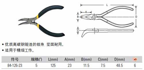 > 全部产品分类 > 五金工具 > 手动工具 > 电力/电子专用 > 电子钳 > 黑柄迷你弯嘴钳