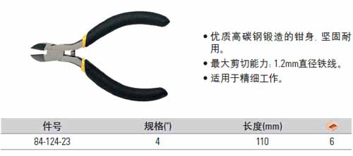 > 全部产品分类 > 五金工具 > 手动工具 > 电力/电子专用 > 电子钳 > 黑柄迷你斜嘴钳