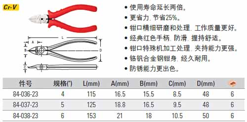 > 全部产品分类 > 五金工具 > 手动工具 > 电力/电子专用 > 电子钳 > 红柄精密水口钳