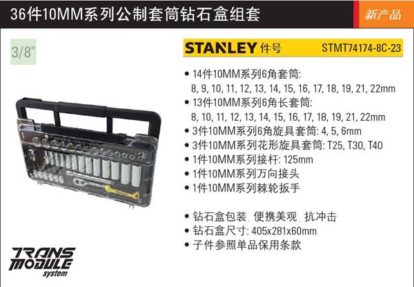 > 全部产品分类 > 五金工具 > 手动工具 > 扳手/套筒/扭矩扳手 > 组套扳手 > 36件10MM系列公制套筒钻石盒组套