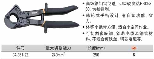 | 1A2856 | 84-861-22 | 长度:250mm,最大切割能力:0-240mm2 | 把 | ¥934.00元 | 1-3天 | |