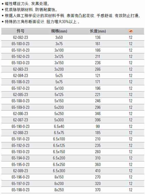 > 全部产品分类 > 五金工具 > 手动工具 > 螺丝刀/内六角 > 一字螺丝刀 > 铬钒钢双色胶柄一字螺丝批