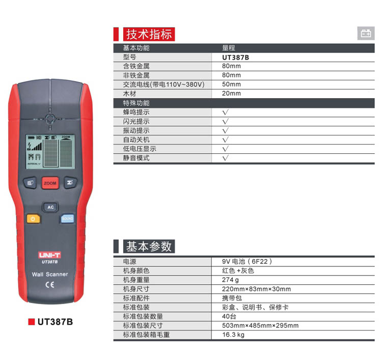 | 4A1631 | UT387B | 含铁金属:80mm,非铁金属:80mm,交流电线:50mm,木材20mm | 台 | ¥314.00元 | 3-15天 |