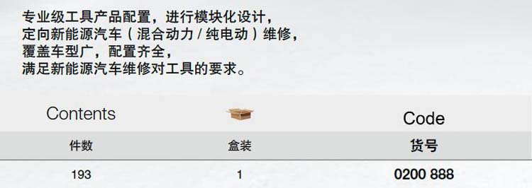 > 全部产品分类 > 五金工具 > 组套工具 > 综合性套装工具 > 193件新能源汽车综合维修组套