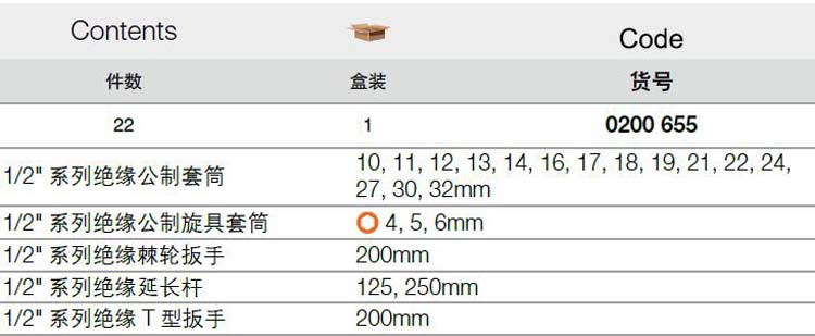 > 全部产品分类 > 五金工具 > 手动工具 > 电力/电子专用 > 绝缘工具组套 > 22件12.5mm系列VDE绝缘套筒组套
