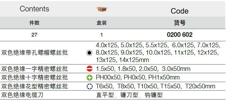 > 全部产品分类 > 五金工具 > 手动工具 > 电力/电子专用 > 绝缘工具组套 > 27件VDE绝缘维修工具组套