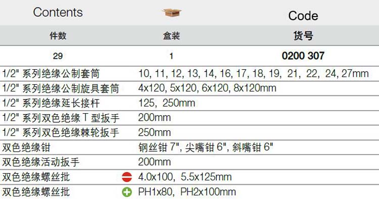 > 全部产品分类 > 五金工具 > 手动工具 > 电力/电子专用 > 绝缘工具组套 > 29件套 1/2寸系列绝缘工具组套