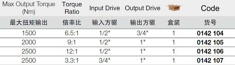 | 1A10318 | 0142105 | 规格:1/2寸-1寸 9:1 2000Nm | 套 | 询价 | 7-15天 | |