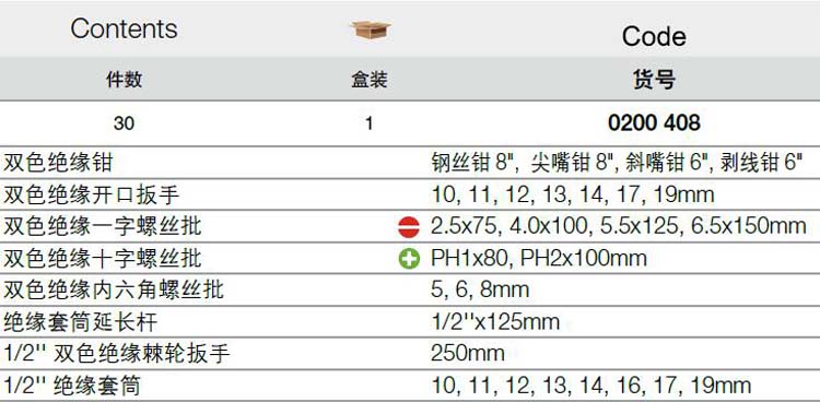 > 全部产品分类 > 五金工具 > 手动工具 > 电力/电子专用 > 绝缘工具组套 > 30件VDE绝缘工具组套