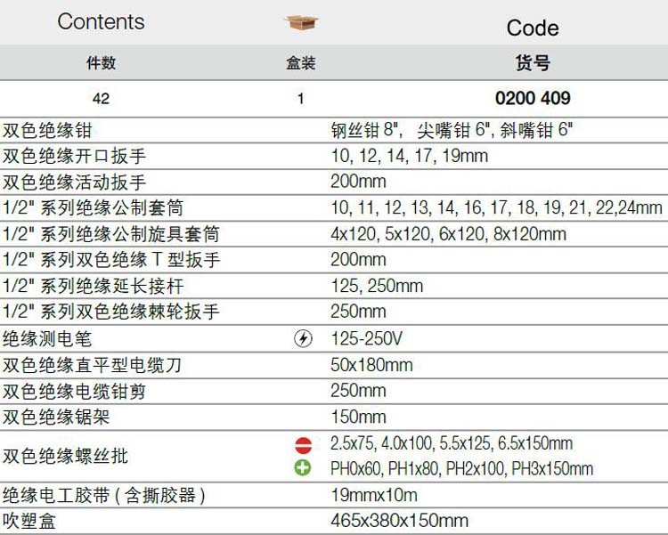 > 全部产品分类 > 五金工具 > 手动工具 > 电力/电子专用 > 绝缘工具组套 > 42件VDE绝缘综合工具组套