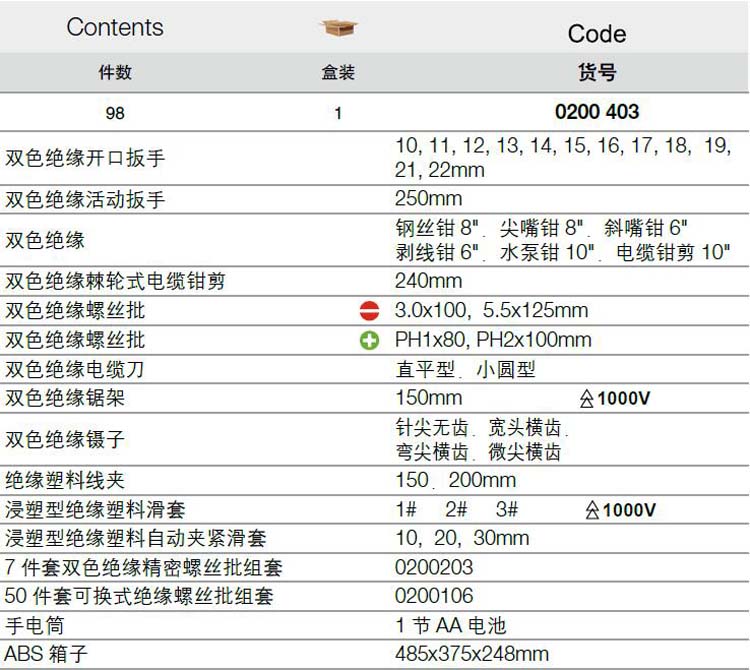 > 全部产品分类 > 五金工具 > 手动工具 > 电力/电子专用 > 绝缘工具组套 > 98件套型绝缘工具综合组套