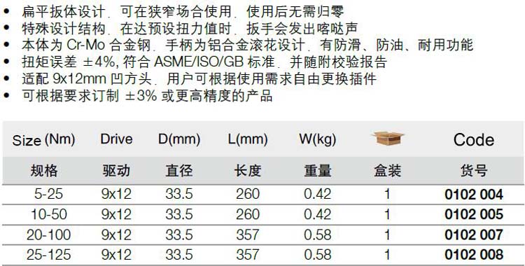 | 1A10096 | 0102007 | 规格:20-100Nm | 把 | ¥52.60元 | 7-15天 | |