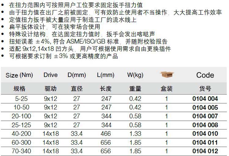 | 1A10110 | 0104004 | 规格:9x12mm 5-25 Nm | 把 | ¥22.50元 | 7-15天 | |