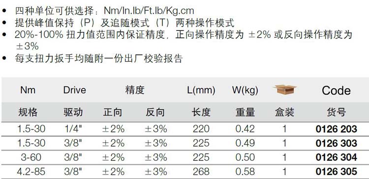 | 1A10209 | 0126303 | 规格:3/8寸 1.5-30 Nm | 把 | 询价 | 7-15天 | |