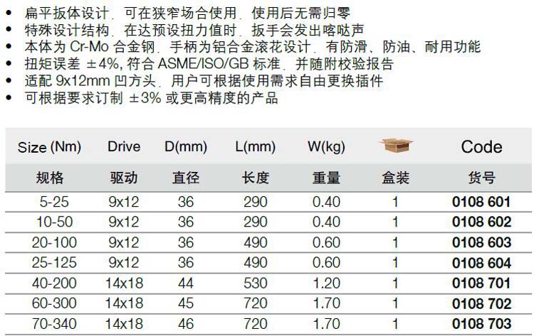 | 1A10165 | 0108601 | 规格:9x12mm 5-25 Nm | 把 | 询价 | 7-15天 | |