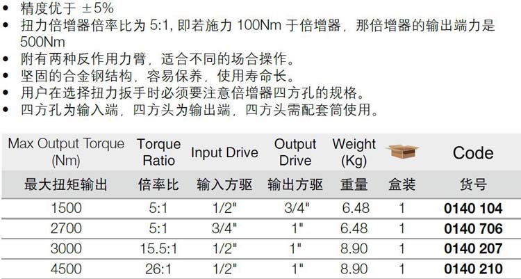 | 1A10296 | 0140104 | 规格:1/2寸-3/4寸 5:1 1500Nm | 个 | 询价 | 7-15天 | |